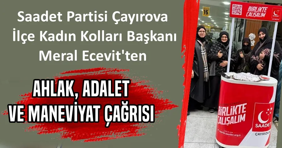 Ben, Saadet Partisi Çayırova İlçe Kadın Kolları Başkanı Meral Ecevit olarak bugün, ülkemizin içinde bulunduğu derin toplumsal ve siyasal çözülmeye dikkat çekmek üzere huzurlarınızdayım.