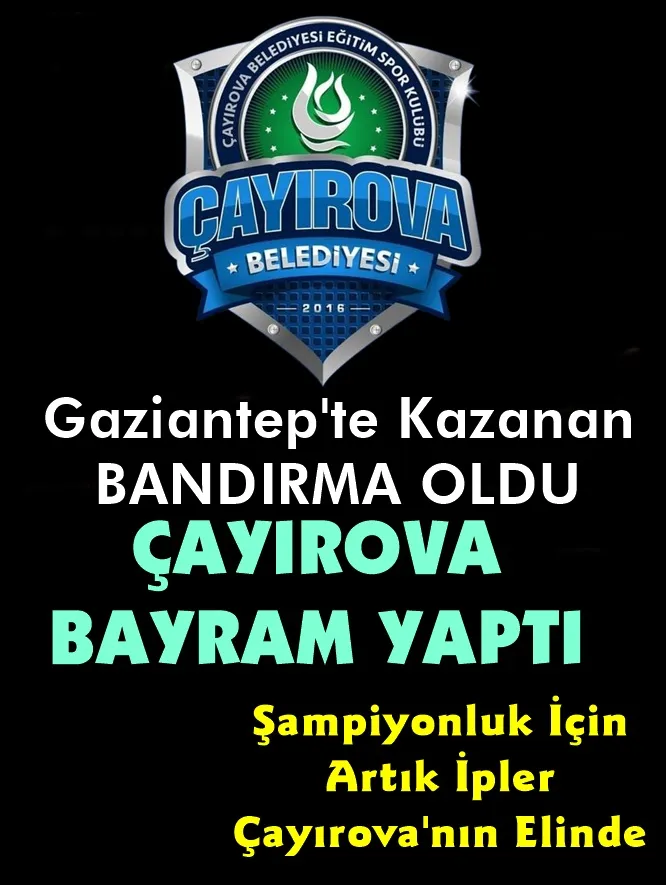Gaziantepspor'u 2 galibiyet averajı ile takip eden Çayırova Belediyespor, lider rakibinin evinde yenilmesiyle averaj 1 galibiyete düştü. Yarın İstanbul'da CMF Gold Haremspor ile karşılaşacak olan Çayırova Belediyespor kalan maçlarında mağlubiyet yaşamadan Çayırova Spor Salonu'nda Gaziantepsporu'u mağlup ederse galibiyet sayıları eşitlenecek. Ancak temsilcimiz lider rakibine Gaziantep'te 22 sayı farkla mağlup olduğu için Çayırova'da şampiyonluk için 23 sayı farkla galip gelmesi gerekiyor. Kalan maçlarda Çayırova mağlup olmaz, Gaziantepspor 1 mağlubiyet daha yaşarsa temsilcimizin güneydoğu ekibine karşı alacağı tek sayılık fark galibiyeti bile play off gruplarına kalmadan normal sezon şampiyonluğu ve Süper Lig'e yükselmesi için yeterli olacak.