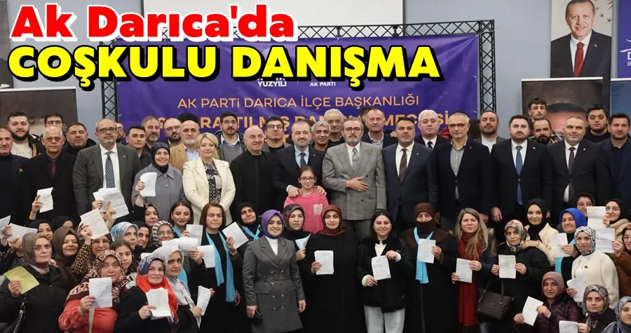 Ak Parti Darıca İlçe Başkanı Köksal Şakar danışma meclisi toplantısına ilişkin, “Tarihin duasıyla yoğrulmuş, irfanın yurdu kadim Darıcamızda; MKYK Üyemiz ve Önceki Dönem Kültür ve Turizm Bakanımız Sayın Mahir Ünal, İl Başkanımız Sayın Şahin Talus, İl Kadın Kolları Başkanımız Yasemin Özdemir, Kocaeli Büyükşehir Belediye Başkan Vekilimiz Hasan Soba, Belediye Başkanımız Muzaffer Bıyık, Kadın Kolları Başkanımız Sevgi Takan ve Gençlik Kolları Başkanımız Mehmet Arslan’ın katılımlarıyla sohbeti bereketli, paylaşımları kıymetli dolu dolu bir daraltılmış danışma toplantımızı geride bıraktık. Sayın Başkanlarımıza ziyaretleri ve kıymetli katkıları için teşekkür ediyorum. Hangi hizmeti anlatırsak anlatalım, her birinde bu teşkilatın bir emeği var. Durmak yok, yola devam! ” ifadelerini paylaştı..
